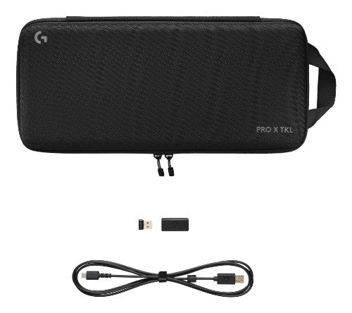 Packaging content | PRO X TKL Gaming Keyboard USB LIGHTSPEED adapter Adapter extension USB-A to USB-C charging and data cable Carrying case User documentation |