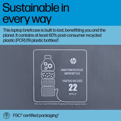 - Sustainability that endures -- this laptop briefcase is built to last, benefitting you and the planet. Plus, it contains at least 60% post-consumer recycled plastic (PCR) (22 plastic bottles)[3] and uses FSC certified packaging.[4]