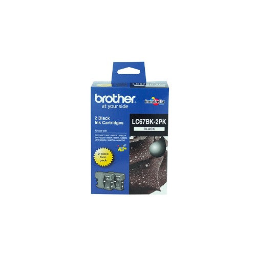 Ensure that replacing your genuine Brother ink cartridges is as hassle-free and affordable as possible by purchasing this LC67BK2PK Multipack. The pack contains two black LC67 cartridges, designed to help you get the best from your Brother printer.Specifications