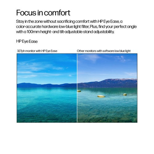 - Stay in the zone without sacrificing comfort with HP Eye Ease, a color-accurate hardware low-blue light filter, and height and tilt adjustability.