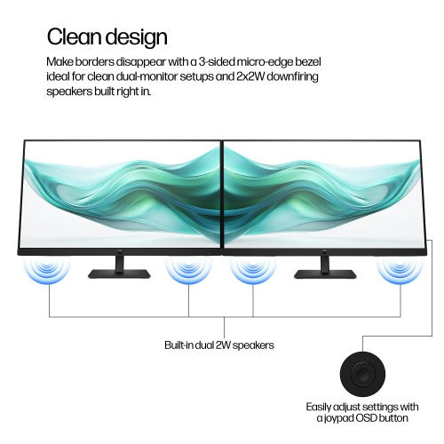 See and do more on your screen with a 3-sided micro-edge bezel that maximizes your viewing area for a sleek design and virtually seamless dual-monitor setups.Built-in 2W Dual Speakers