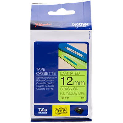 12mm Black on Fluorescent Yellow Laminated Tape - 5m