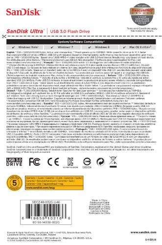 The SanDisk Ultra USB 3.0 Flash Drive is backed by a five-year limited warranty.