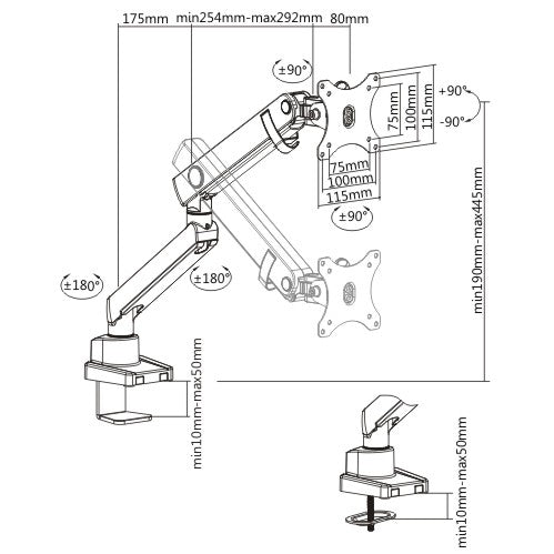 No more crawling under desks on your hands and knees! LDT20-C012 Single Monitor Aluminum Slim Spring-Assisted Monitor Arm comes with Top Fix fitting, which means this type of arm is perfect for limited space underside of the desktop. Its optimizing elbow spring gauge offers the performance and quality needed for weight adjustment. Quick-release VESA plate of exquisite structure and detachable joints make it an ideal support for longer life and easy installation.Specifications