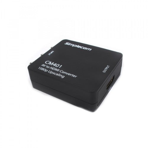 Simplecom CM401 Composite AV to HDMI converter, is a universal converter for analog composite input to HDMI 720p or 1080p (60Hz) output. If you want to use your VCR, camcorder, or game system on your HDTV or HDMI monitor, simply plug standard composite AV cables (yellow, red, and white) into the input port of the converter, and then connect an HDMI cable from the converter to your TV. It works great with either 720p or 1080p TVs, and the output mode is easily selectable with a switch on the device. This converter's advanced processing allowing you to get the clearest picture quality possible with optimal colour and detail reproduction. Both video and audio are integrated into the HDMI output, providing an all-digital signal to maximize the fidelity of the audio and video.Specifications
