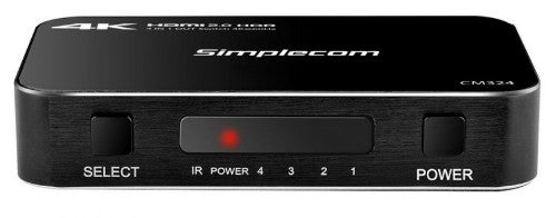 Simplecom CM324 4 Way HDMI 2.0 Switch 4 In 1 Out Splitter HDCP 2.2 4K @60Hz UHD HDR CM324 is a 4 Way HDMI 2.0 4K switch for your latest gaming or home theatre setup. It widely compatible with most HDMI devices and supports HDMI 2.0 and HDCP 2.2, ideal for latest online streaming box and game console with 4K UHD HDMI output. This HDMI 2.0 4K switch is also backward compatible with previous HDMI revisions with 1080p / 720p video resolution devices. Easy plug & play operation, simply plug in the HDMI input sources into the 4 HDMI inputs and the HDMI output connection to your display. It will automatically switch to the currently active input source if there is only one active input. If there are multiple active inputs, you can select the input by press the select button on the switch or use the remote control.Specifications